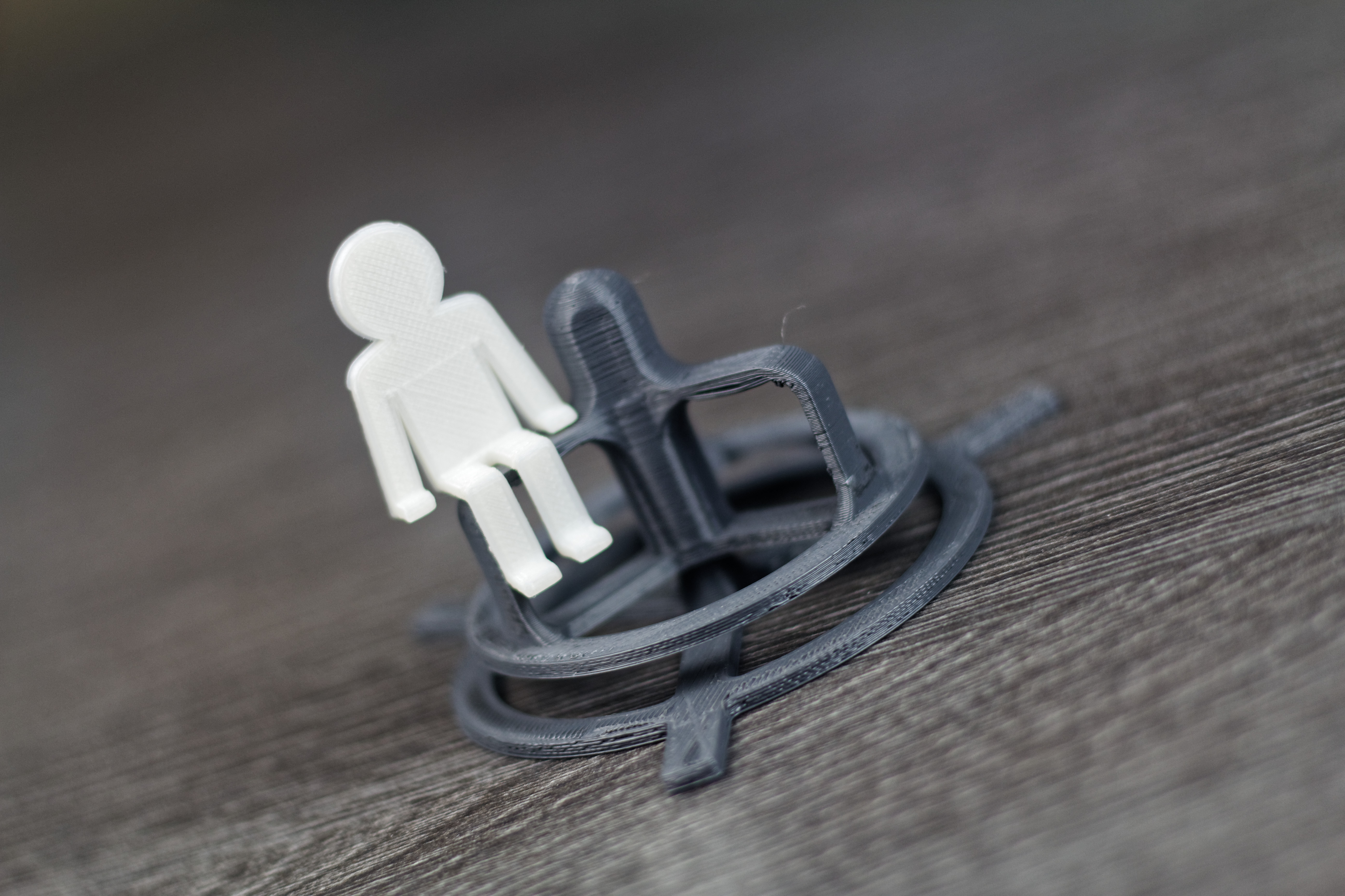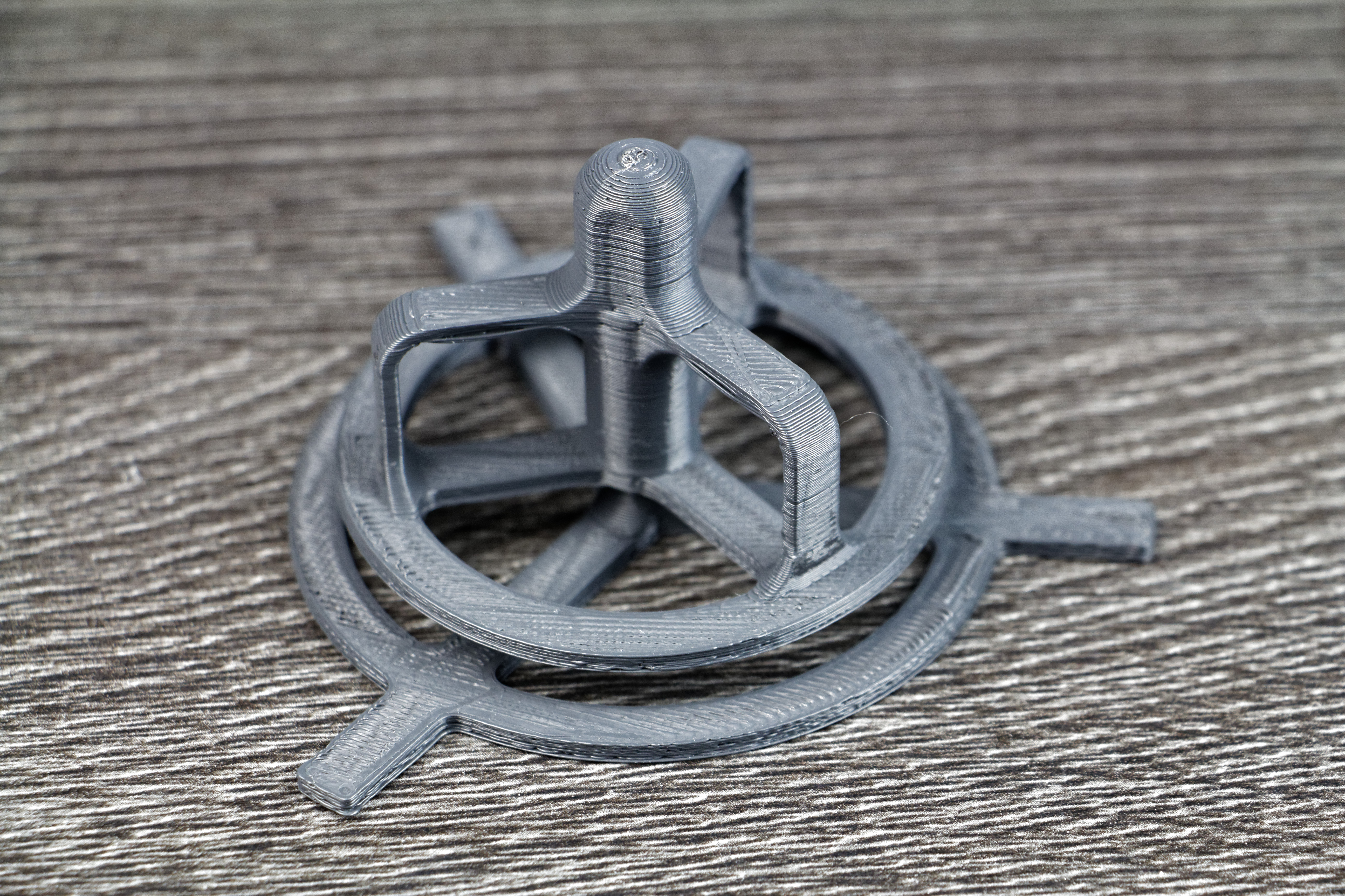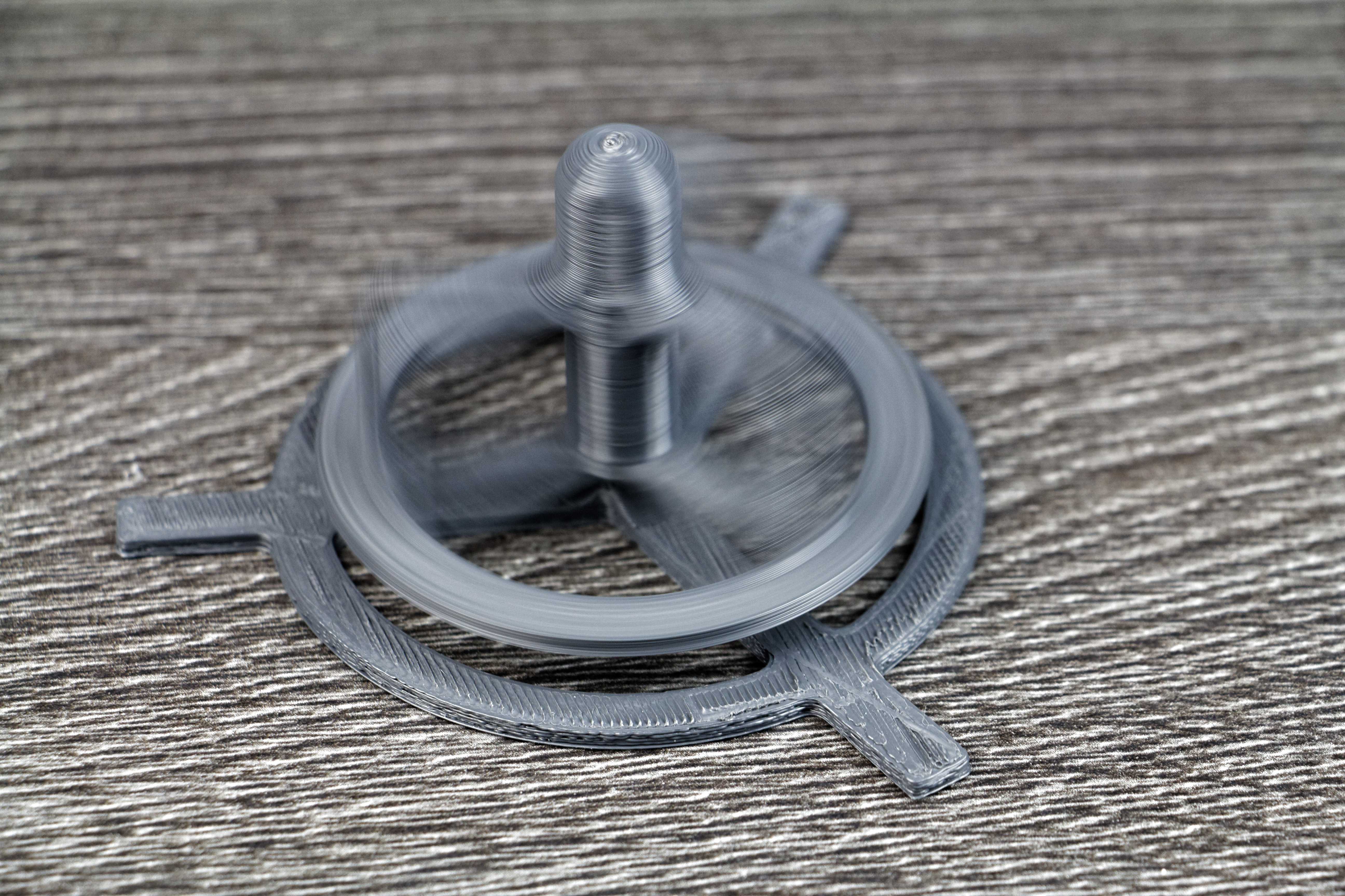 Avec les réglages de base, c’est à dire une qualité d’impression à 0,20mm et un remplissage à 17%, il a fallu environ 45 minutes pour le support et un peu plus d’une heure pour la partie tournante.