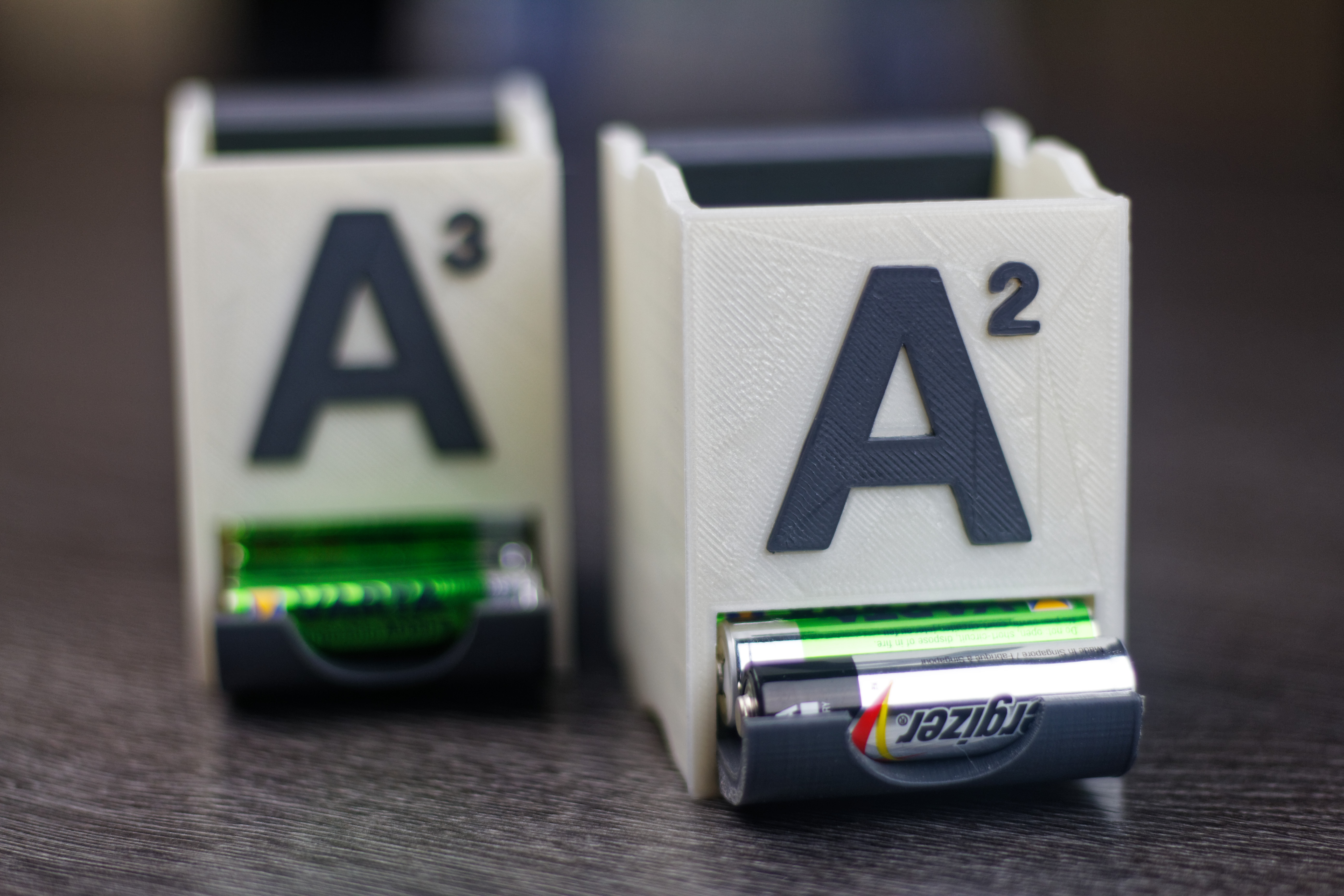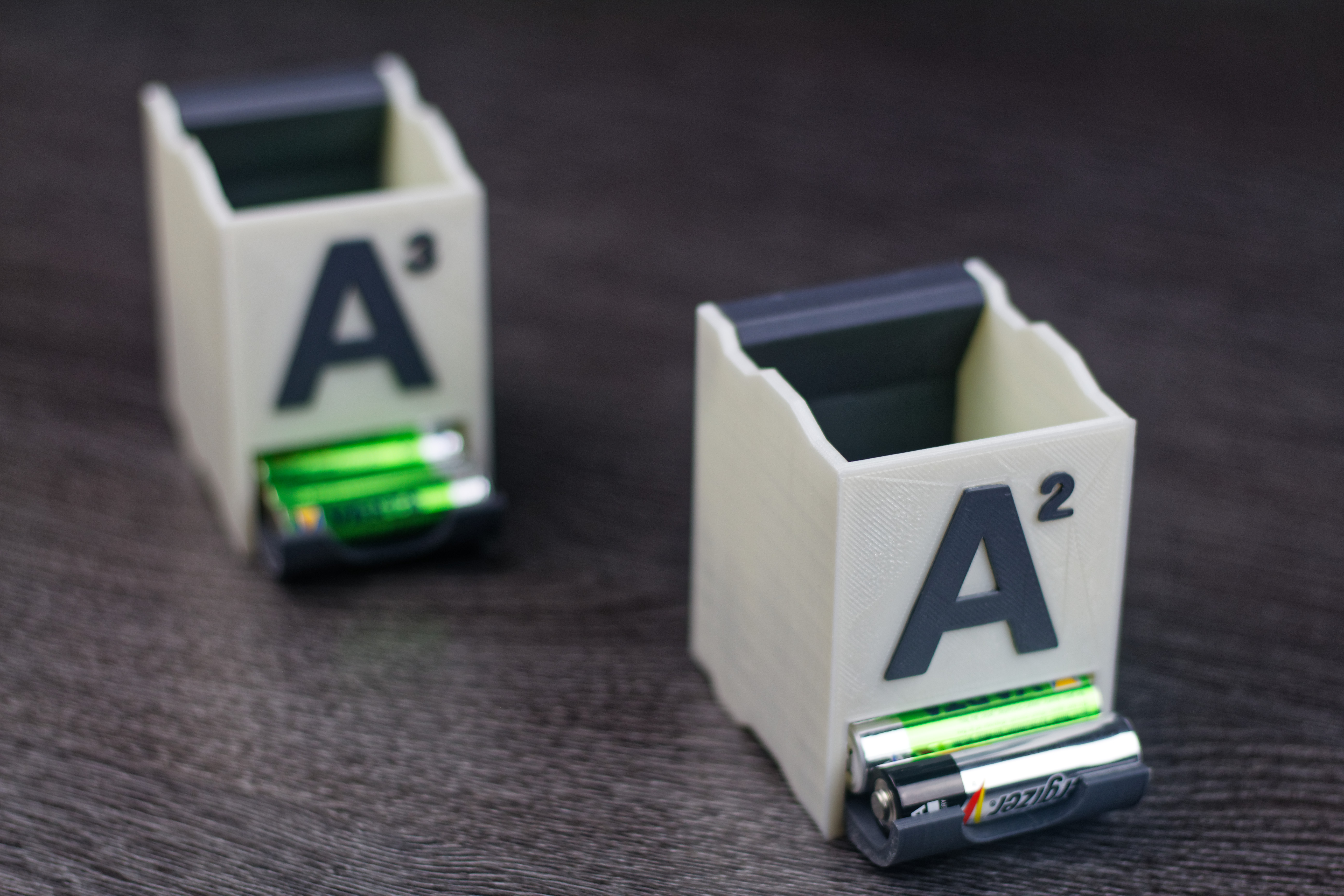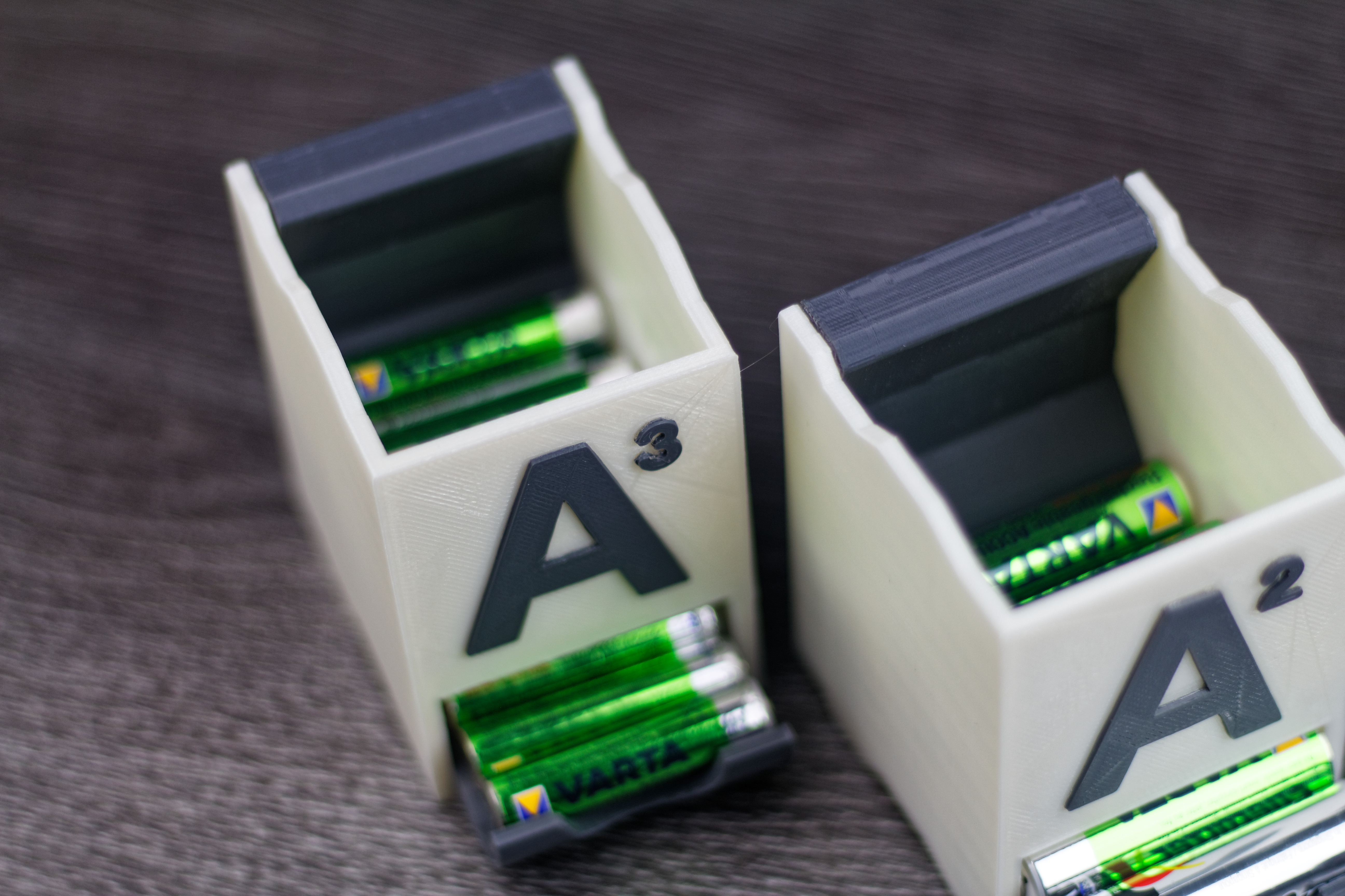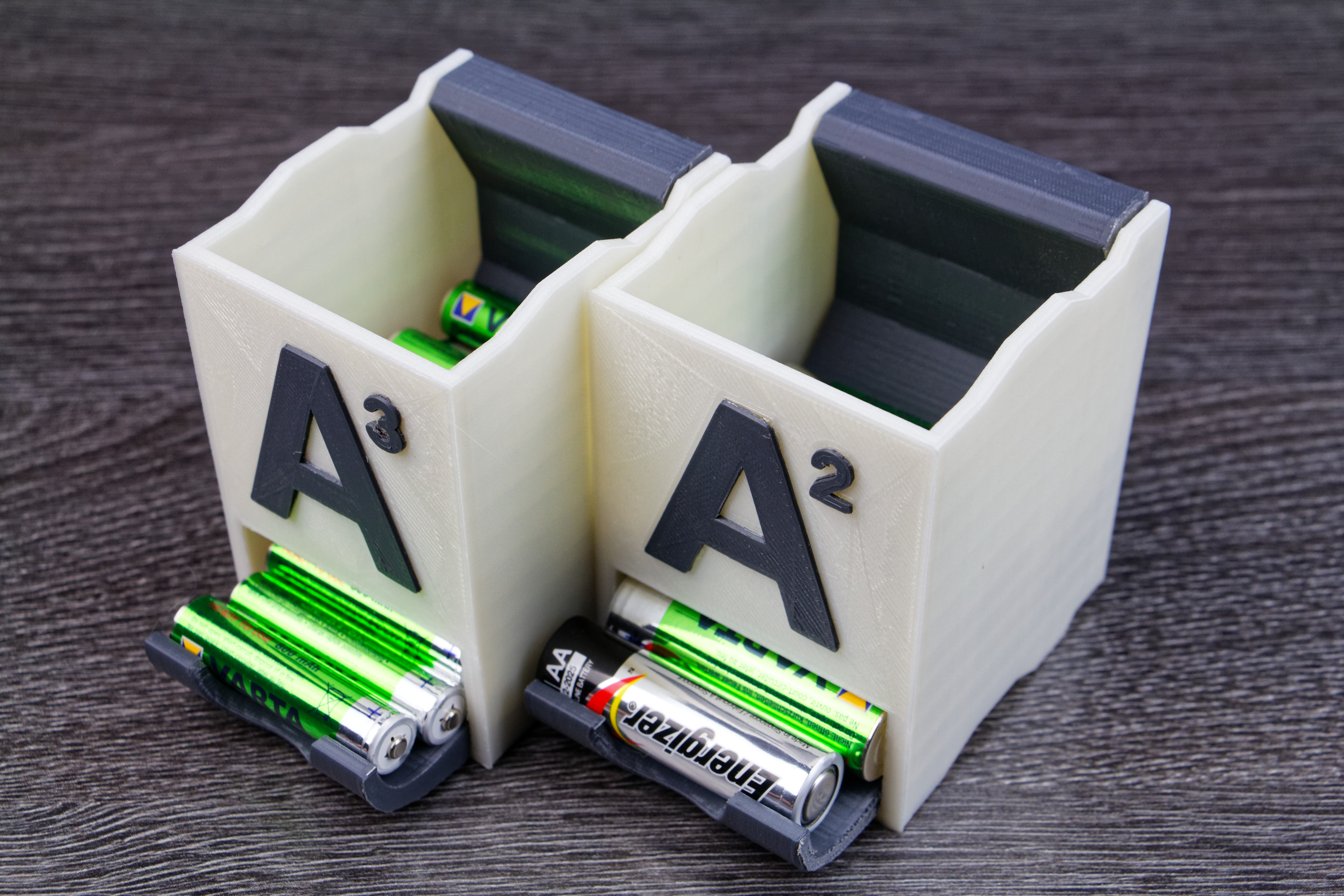 Utilisant pas mal de piles rechargeables à la maison, que cela soit des AA (LR6) ou AAA (LR3), j’ai donc imprimé des distributeurs de piles. Je n’ai pas la prétention d’avoir dessiné le modèle 3D, je l’ai simplement trouvé sur Thingiverse.