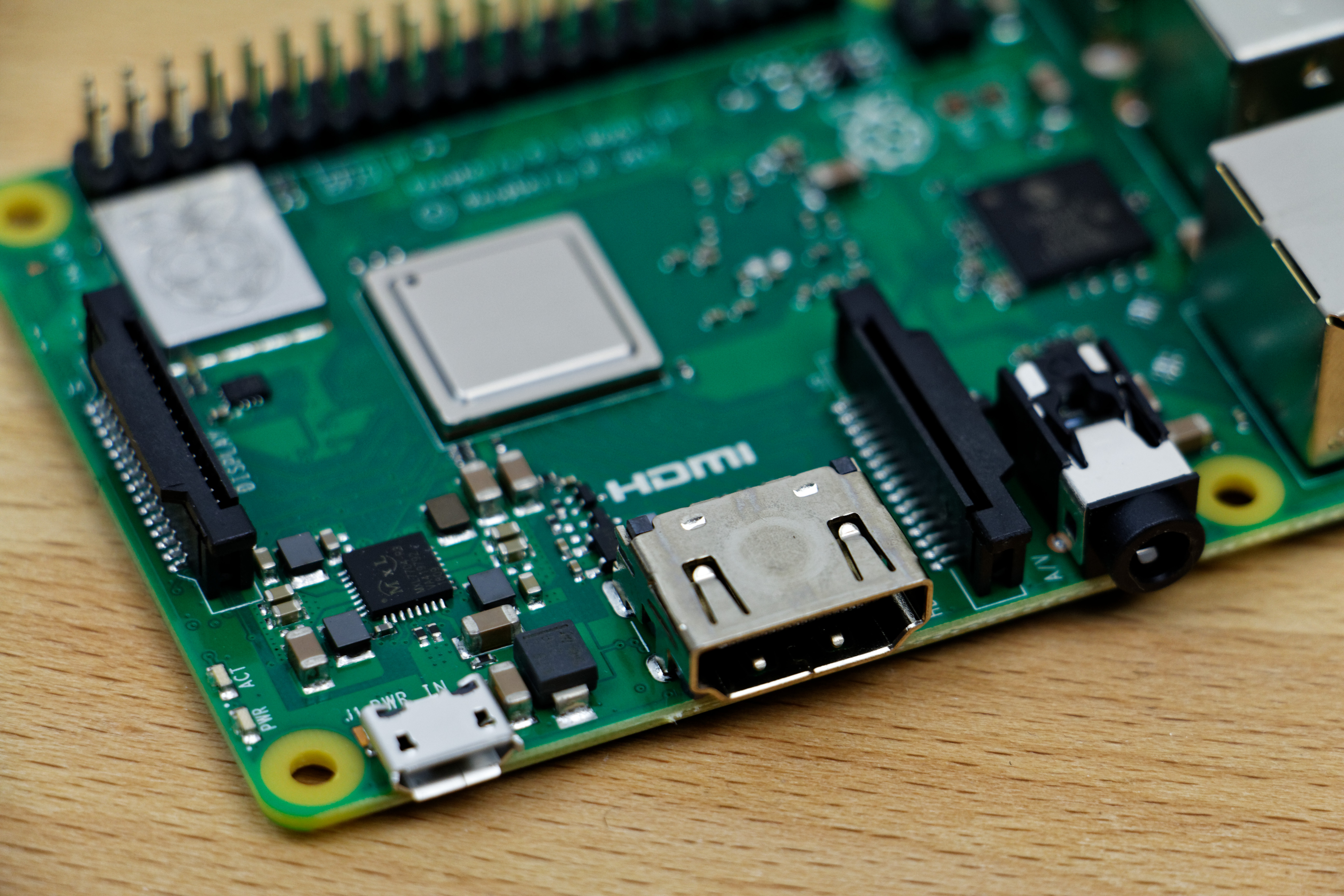 De ce côté là peu de changement, hormis le port RJ45 qui est maintenant compatible Gigabit, mais qui est bridé par le bus USB2.0 à environ 315Mbits/s. On est loin du Gigabit théorique (environ 1000Mbits/s), mais ne faisons pas la fine bouche, c’est tout de même prêt de 3 fois plus rapide que le Pi 3 !
